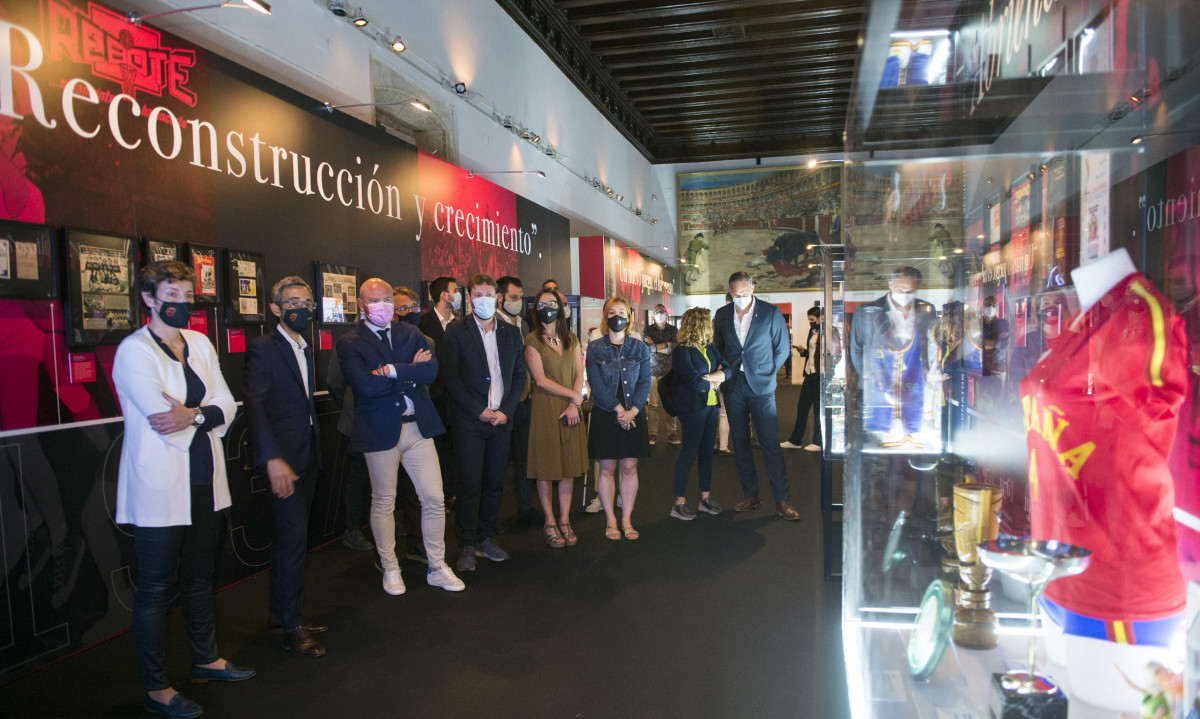 El presidente de la Diputació, Toni Gaspar, y el diputado de Deportes, Andrés Campos, han acompañado a la campeona de Europa en 2013 y directora de Competiciones de la Federación, Elisa Aguilar, en la apertura de una exposición que recopila trofeos, medallas, equipaciones, carteles, documentos originales, programas de torneos y objetos curiosos de la colección permanente del Museo FEB, como el reloj de mesa cronómetro de 1950 que se empleaba en el transcurso de los partidos.