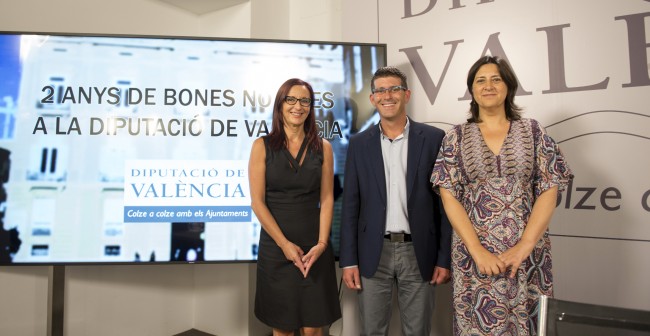 El presidente de la Diputación de Valencia, Jorge Rodríguez, la vicepresidenta, Mª Josep Amigó, y la vicepresidenta 4ª y diputada de Inclusión Social, Memoria Histórica y Teatros, Rosa Pérez Garijo, han hecho hoy balance de los dos primeros años de legislatura al frente de la institución provincial y han coincidido a la hora de destacar la revolución en la gestión de cada una de las áreas de la Corporación en los dos últimos años, como conclusión principal del balance de ecuador de la legislatura.