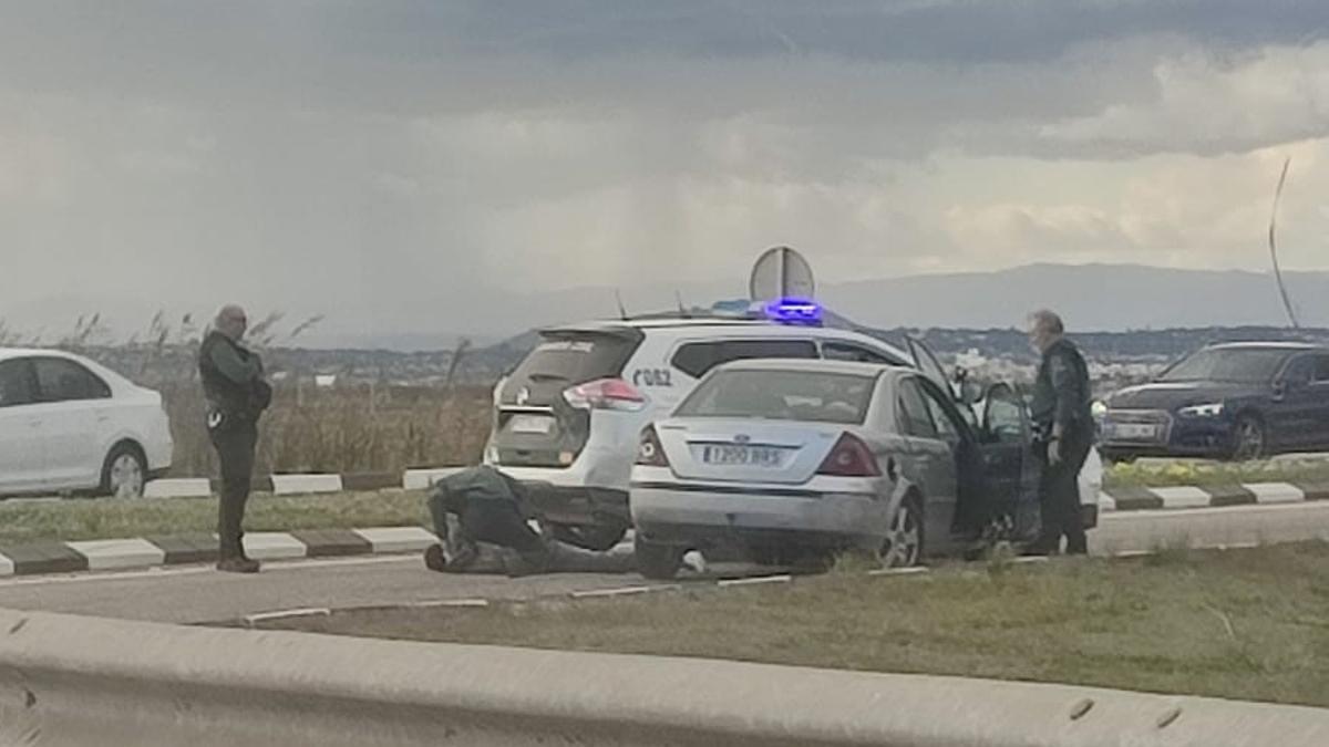 Tras una persecución, el vehículo fue interceptado en la rotonda de la carretera CV-500. Los dos ocupantes del vehículo fueron detenidos y trasladados a dependencias policiales.