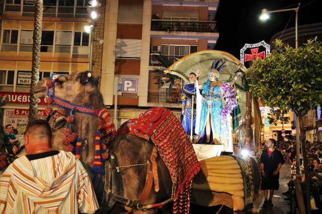 A continuació, les comparses mores van iniciar el seu recorregut que, ple de gom a gom, va gaudir de cada tratge, del moviment dels caporals, de la música i de l'espectacularitat. La comparsa Beduïns va repartir obsequis beduïns al públic, els balls i les diferents esquadres realenques i guerreres van donar pas a la carrossa de Patricia López, alferes mora.