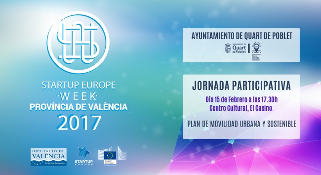 El Ayuntamiento de Quart de Poblet se ha sumado a la Startup Europe Week (SEW) y organizará el próximo 15 de febrero una Jornada Participativa de Movilidad Inteligente abierta a toda la ciudadanía, en la que se explicarán las ayudas europeas y proyectos innovadores, vinculados a esta área, de los que puede beneficiarse el municipio.