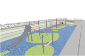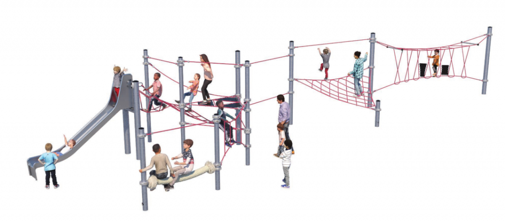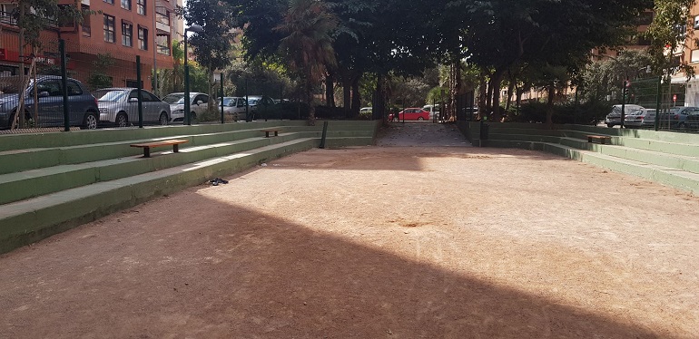 En la zona de juegos infantiles de la medianera ajardinada de la calle del Músic Ginés se instalará un juego infantil de equilibrio que consiste en entramados de cuerda colgados de palos de acero incluyendo un tobogán también de acero (con unas dimensiones totales de juego de 1908x492x290cm). En la superficie actual de tierra morterenca se realizará un pavimento de seguridad de caucho continuo de 10 centímetros de espesor “y en el graderío existente se pintará un mural con un motivo de color que aporte en esta zona infantil movimiento y alegría”. Por último, se adecuarán las pendientes de las rampas de acceso a esta zona de juegos para que sean accesibles según la normativa vigente.