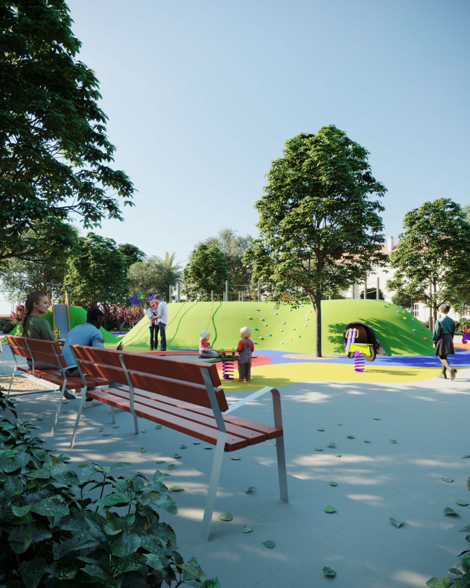 El nuevo espacio de juegos infantiles contará con elementos inclusivos como un túnel o una cesta redonda. Además, se instalarán también tablas de picnic y se renovará el mobiliario. Todo el espacio vela por el uso universal de las instalaciones, y en esta nueva zona de juegos todos los niños y niñas podrán jugar, sea cual sea su condición, una de las principales líneas de actuación de la concejalía de Ecología Urbana.