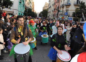 El de este sábado 18 de febrero ha sido el pasacalle más multitudinario que se recuerda en Russafa. Arrancó a las 17 horas en el parque de Granero y discurrió por las calles Filipinas, Pintor Gisbert, Cuba, Sueca, Literato Azorín, de nuevo Cuba y final de nuevo en el parque Granero, en un circuito que finalizaría bien entrada la noche.