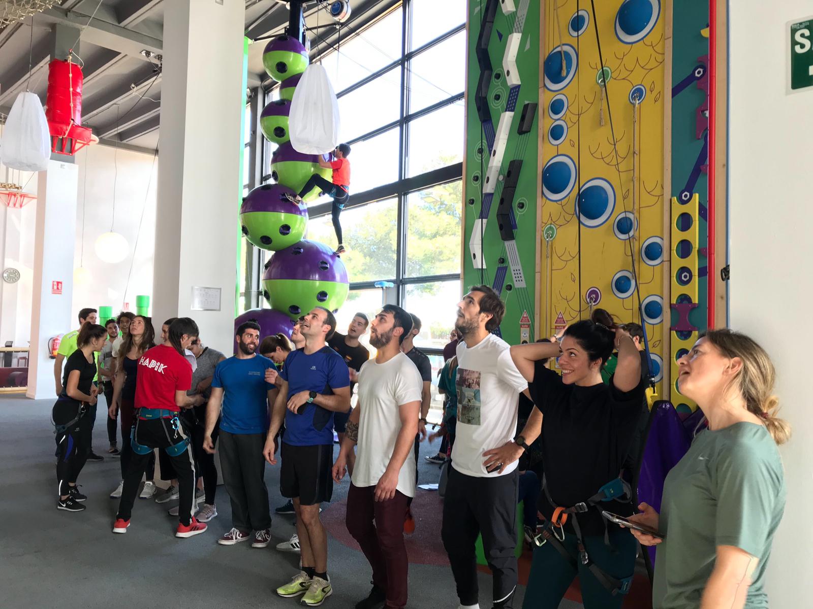 Al staff de Decathlon Alfafar, HAPIK les planteó cuatro retos por dificultades y dividió a los 60 empleados en 7 grupos con los objetivos de “trabajar en equipo, hacer piña, propiciar un pique sano y animarles a superar las virtudes y las debilidades del altura en conjunto”, explicó Salinas. Durante más de una hora y media, los empleados de franjas de edad dispares pudieron participar en pruebas de velocidad, escalada libre y conocer sus límites.