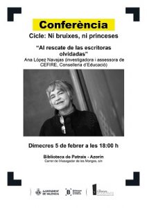 La Xarxa de Biblioteques Municipals de València acollirà tots els dimecres de febrer i dos dimecres de març el cicle de conferències ‘Ni bruixes, ni princeses’, emmarcat en les activitats del Dia de la Dona.