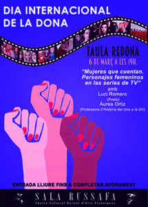 La primera de ellas llega el miércoles 6 de marzo a partir de las 19h y con acceso gratuito, hasta completar aforo. Sala Russafa organiza la charla ‘Mujeres que cuentan. Personajes femeninos en las series de ficción’, con la participación de la poeta Luci Romero y de Áurea Ortiz, profesora de ‘Historia del cine’ de la Universitat de València. Una iniciativa fruto de la investigación que ambas están desarrollando sobre los roles de género promovidos a través de todo un fenómeno: las series televisivas.