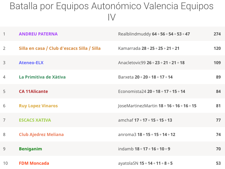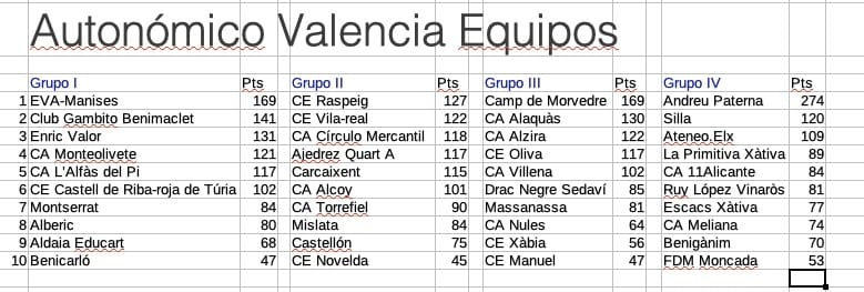 Por parte del Club Ajedrez Paterna se ha logrado situar a cinco de sus componentes en las primeras cinco posiciones, logrando de ese modo la clasificación para la final con gran solvencia. La escuadra paternera se midió en esta ronda clasificatoria al Club d’Escas Silla y al Ateneo Elx, que quedaron segundo y tercer clasificado respectivamente, así como a La Primitiva de Xàtiva, CA 11Alicante, Ruy López Vinarós, Escacs Xàtiva, Club Ajedrez Meliana, Beniganim y FDM Moncada que se repartieron las demás posiciones.