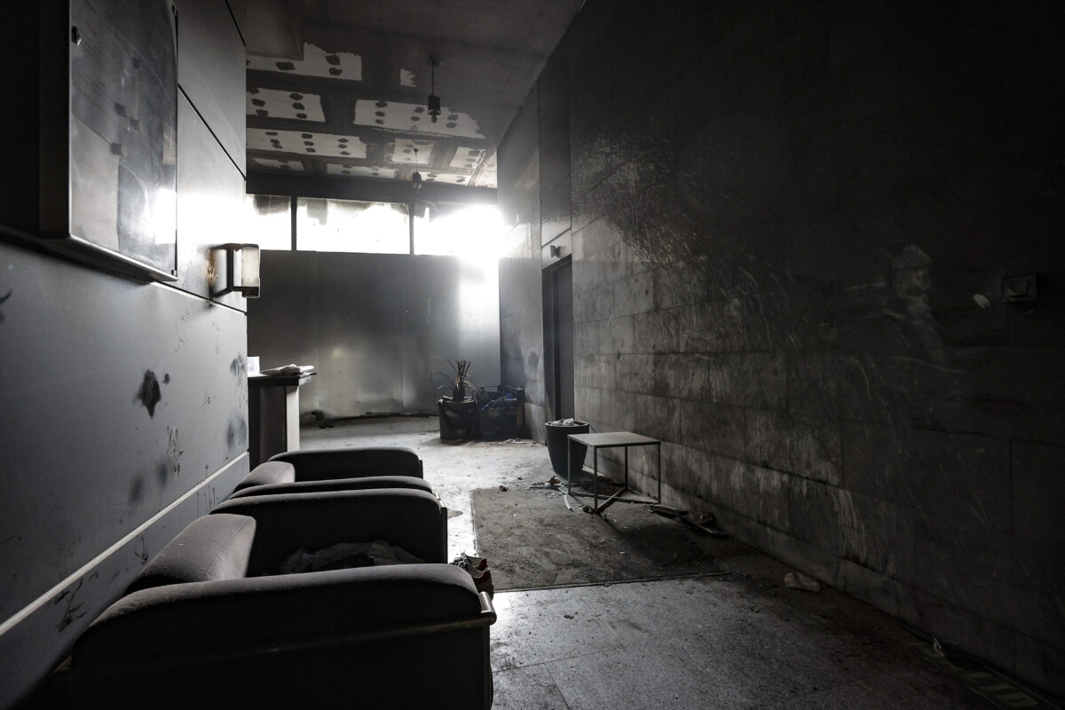 El interior del edificio siniestrado en el barrio de Campanar refleja todavía el horror de lo vivido hace seis meses, cuando el fuego devoró en menos de una hora las 138 viviendas de sus dos bloques, llevándose por delante la vida de diez personas.