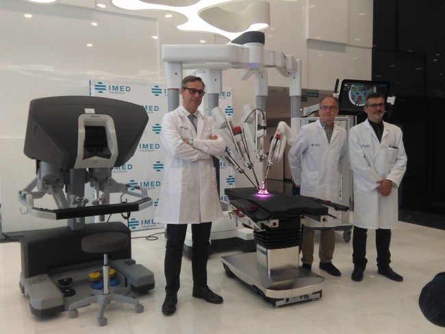 El hospital IMED ubicado en Burjassot ha presentado hoy su nueva adquisición: el robot Da Vinci XI. Se trata de una innovadora tecnología, única en la Comunitat Valenciana, que permite realizar cirugías menos invasivas incluso que las que se hacen por laparoscopia, según ha explicado el jefe de la unidad de Cirugía Robótica del centro, el doctor Antonio Alberola.