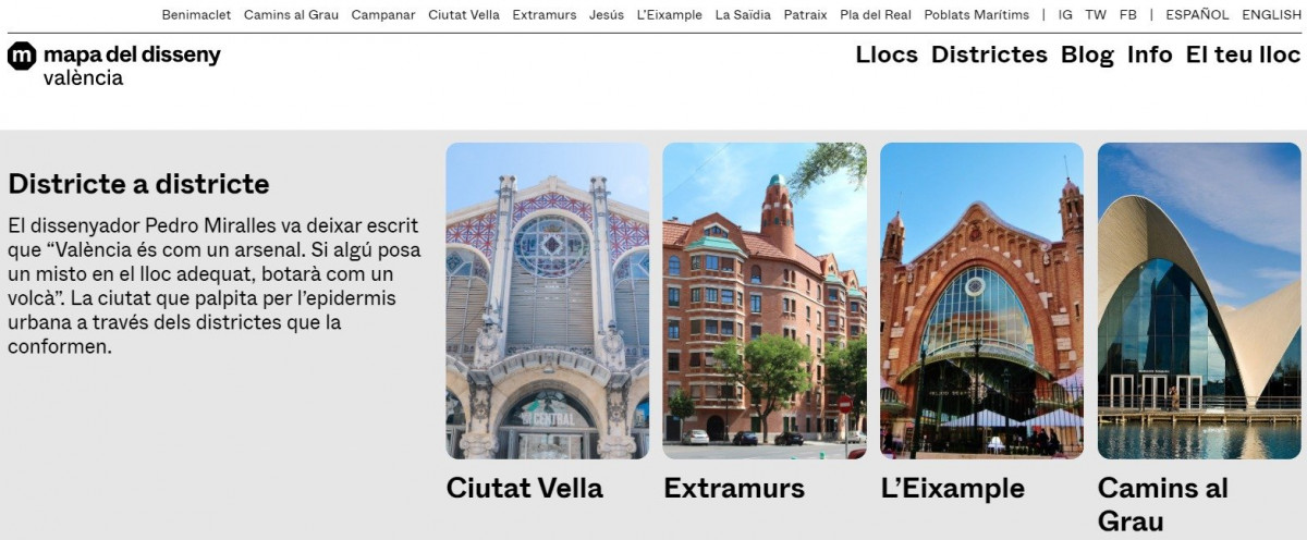Más de un centenar de tiendas, cafeterías, espacios creativos, galerías, hoteles, museos y restaurantes conforman en estos momentos el mapa del diseño de València. Se trata de una web colaborativa impulsada por Visit València y València Capital Mundial del Diseño 2022 que arrancó en abril pasado con unos veinte puntos de interés que se han ido ampliando gracias a las propuestas ciudadanas. La guía, dirigida por la Agencia Districte, permite delimitar por distritos, por tipología de local, elegir entre valenciano, castellano e inglés, y también sugerir nuevos espacios que destaquen por la creatividad, estética, interiorismo o identidad gráfica. Los organizadores esperan generar próximamente un mapa físico que estará disponible en las oficinas de turismo.
