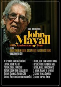 El maestro del blues, genio incombustible de la escena blusera desde hace cinco décadas John Mayall (Macclesfield, Cheshire, 1933) anunció nueva gira en España para el próximo otoño bajo el título '85th Anniversary Tour'.