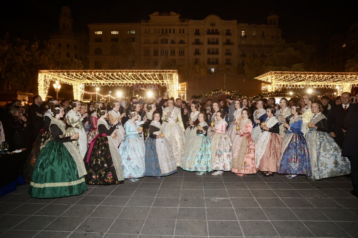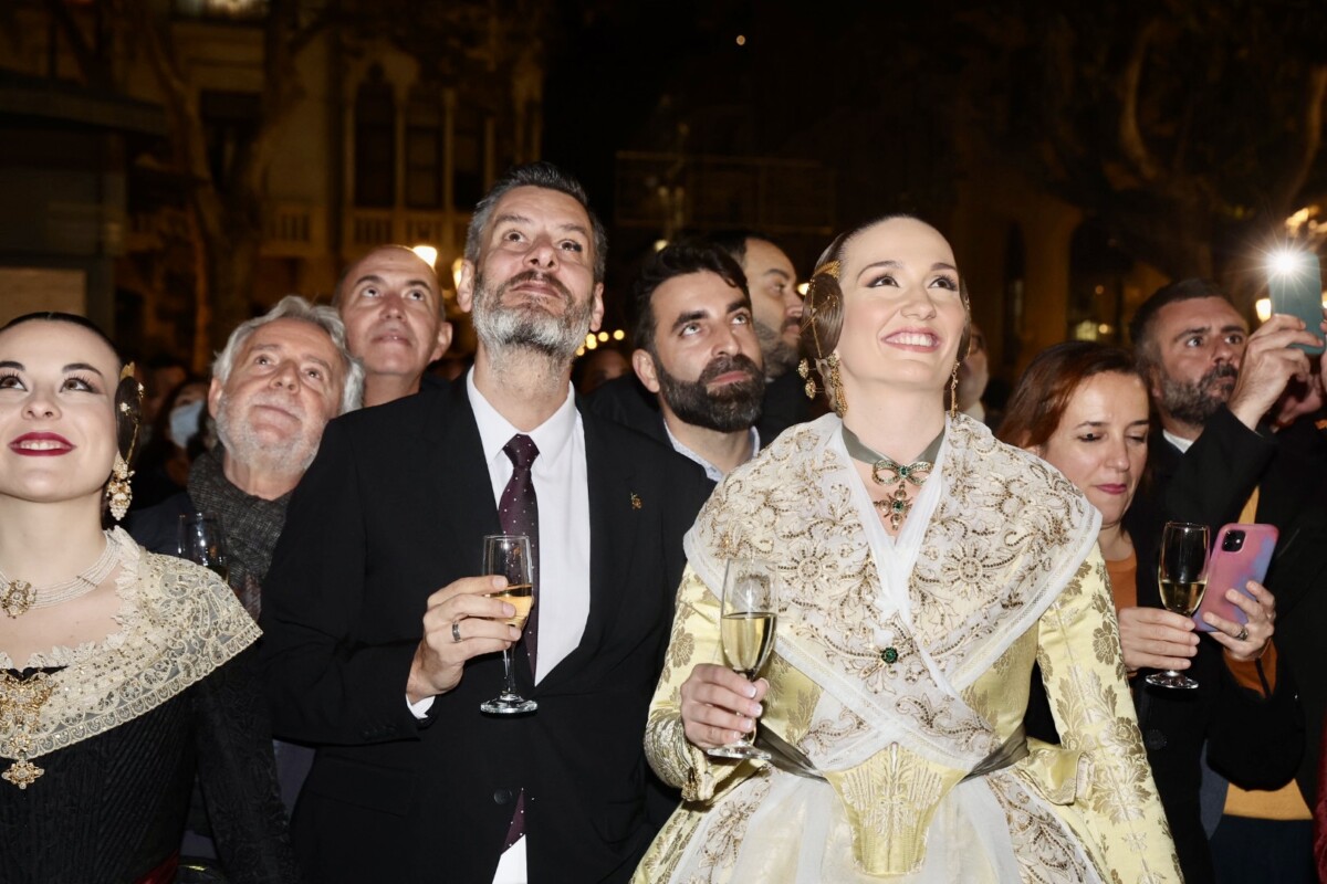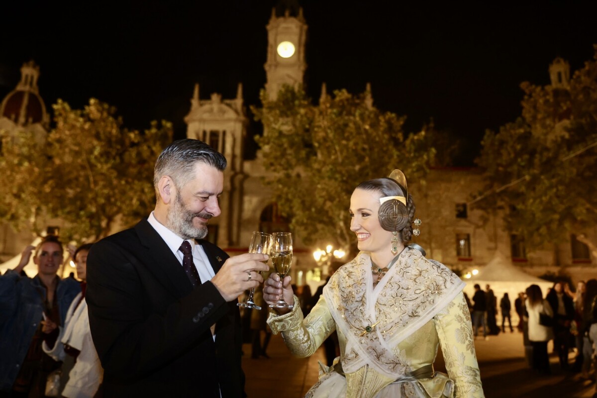 El concejal de Cultura Festiva y presidente de Junta Central Fallera, Carlos Galiana, la Fallera Mayor de València, Laura Mengó, y las Cortes de Honor, entre otras autoridades, han presidido el tradicional brindis institucional a las 22.00 horas a las puertas del Ayuntamiento de València, acompañados por decenas de personas. La celebración ha estado amenizada por el Cant d'Estil y la Colla de Tabal i Dolçaina de Junta Central Fallera y ha finalizado con un castillo de fuegos artificiales que ha disparado pirotecnia Tamarit desde la casa consistorial y que ha llenado de luz y color el centro de la ciudad.