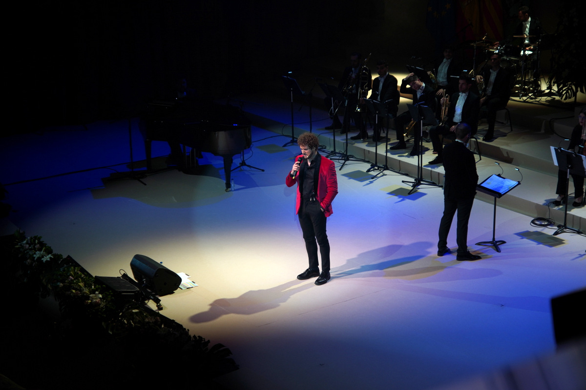 Daniel Diges, acompañado por la orquesta sinfónica de La Estación, integrada por instrumentos de cuerda, viento y percusión han ofrecido un espectáculo dedicado a la Fallera Mayor de Valencia y su Corte de Honor. Bajo el título 'Cineman Sinfónico', el show musical dirigido por Gabriel Olivares ha recorrido las más emblemáticas canciones de las bandas sonoras cinematográfica como 'All that jazz' de la película Chicago, 'Never enough' de El Gran Showman, 'Les Misérables', 'Cinema Paradiso', 'La canción del mariachi', 'Your song' de Moulin Rouge, 'Gladiator', 'No puedo apartar mis ojos de ti' (Can't take my eyes off of you), y para culminar, 'Yo te seguiré' (I will follow him) de la película Sister Act.