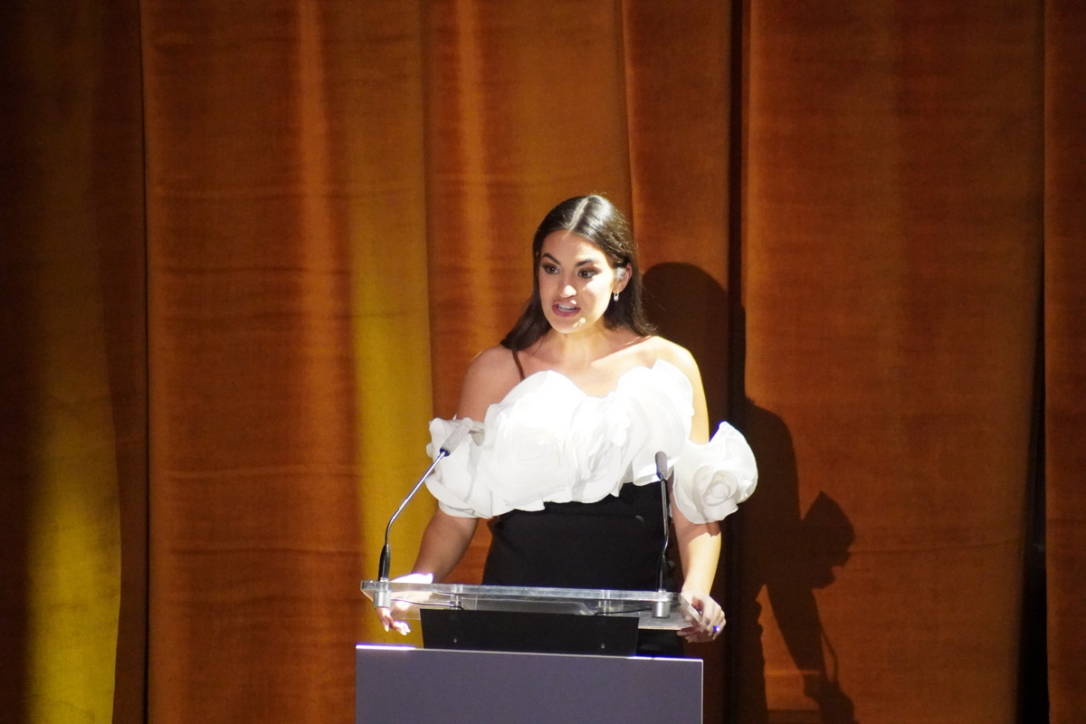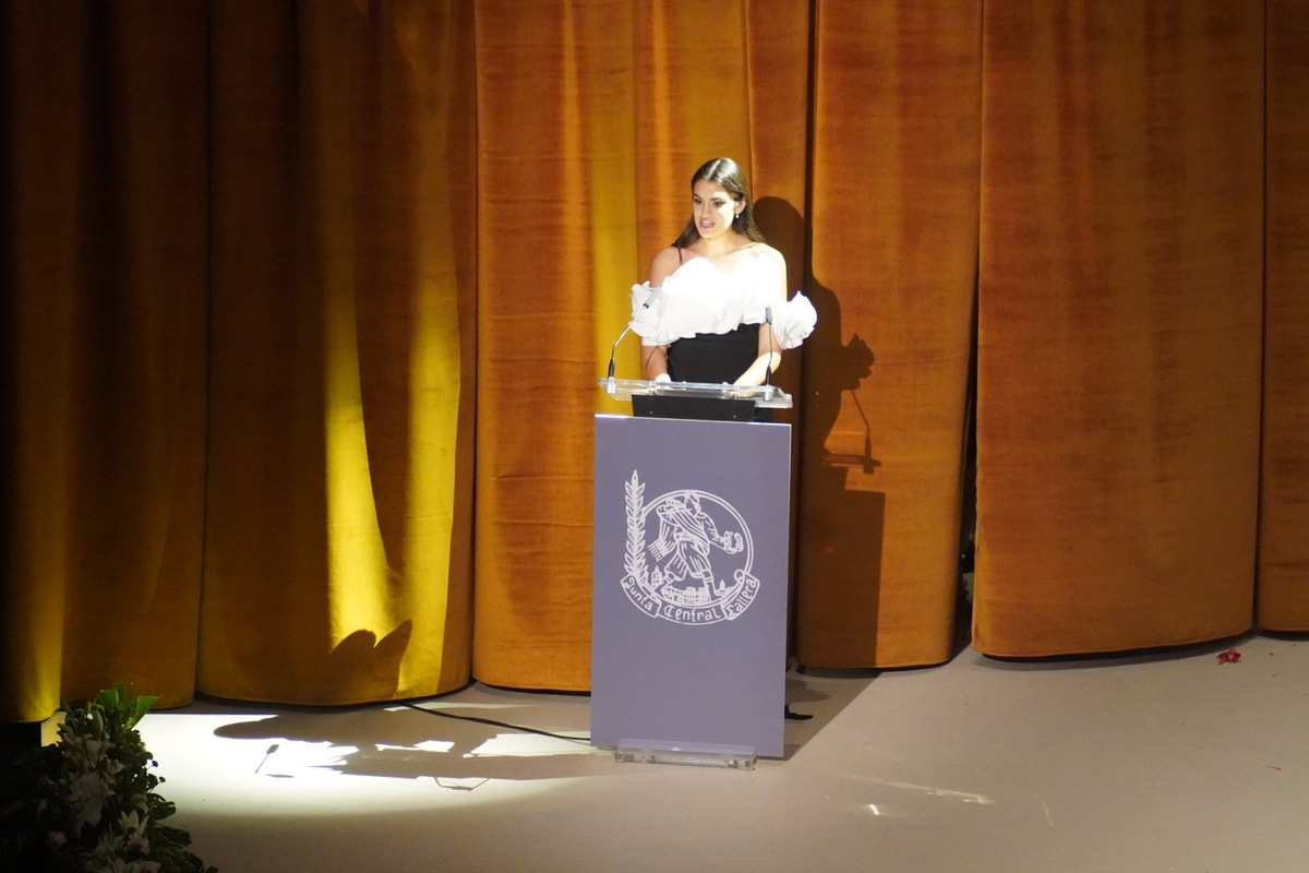 María Estela Arlandis Ferrando, ya dignísima portadora de la más alta representación, Fallera Mayor de Valencia para las Fallas de 2024, presidía ya el acto desde la Cadira d'Or.