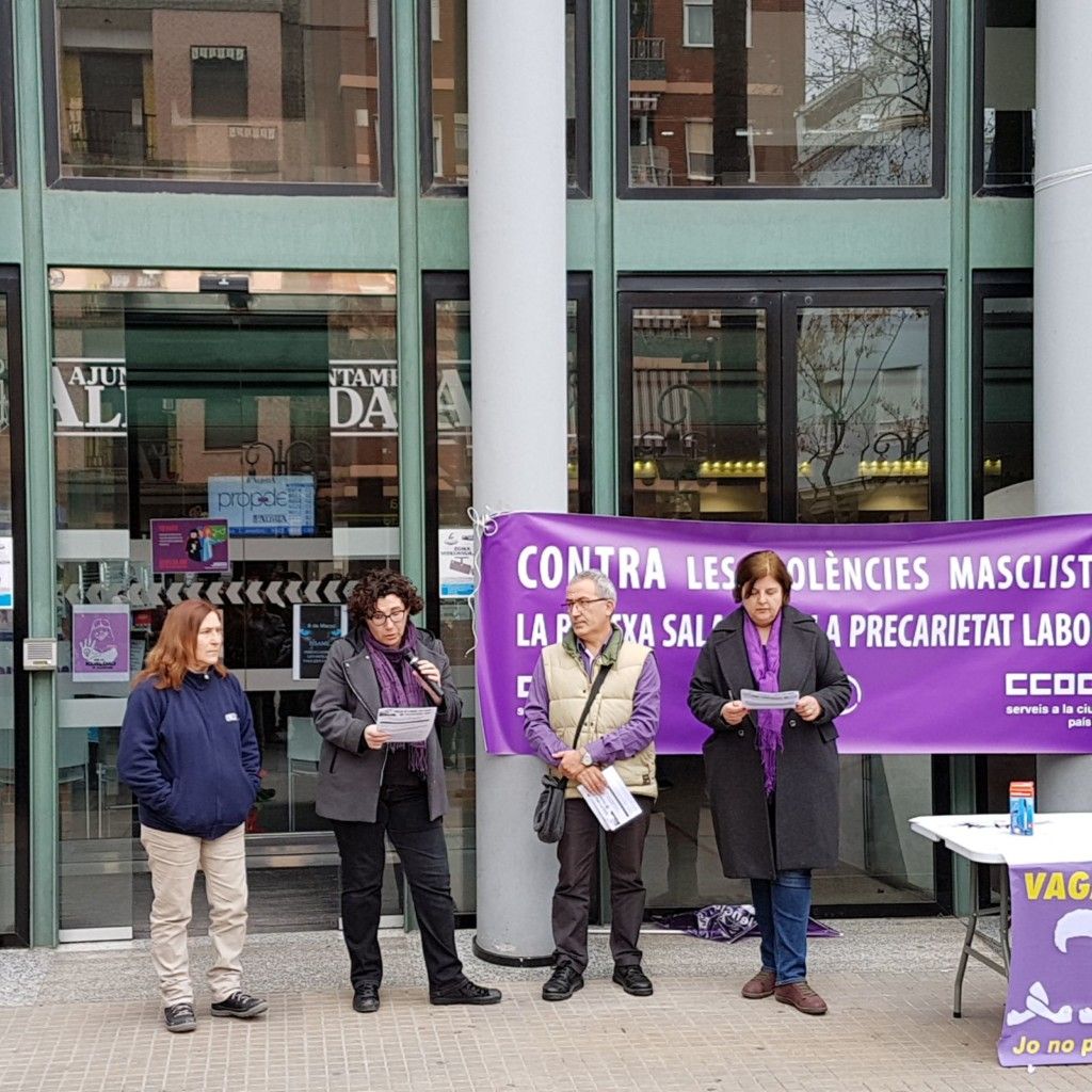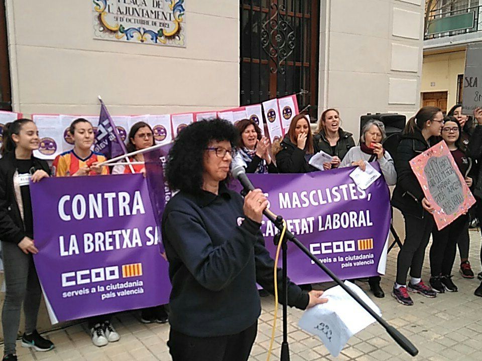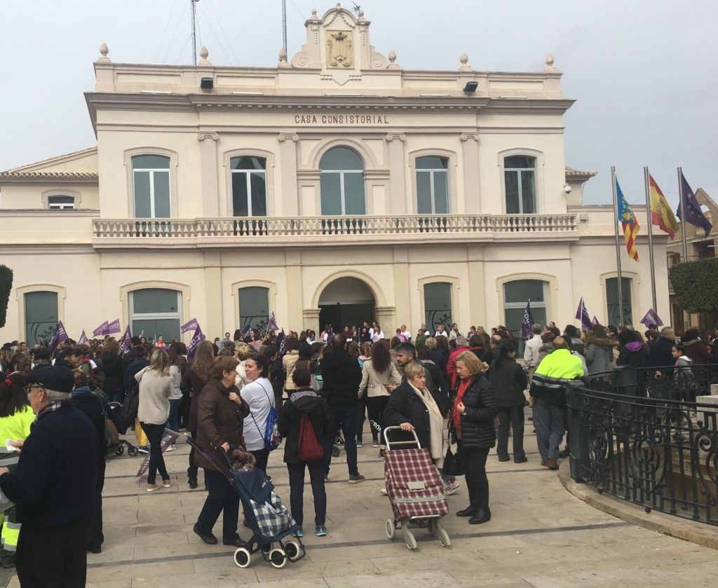 La huelga feminista, los paros de dos horas por turno, las concentraciones y las marchas y manifestaciones convocadas con motivo del Día Internacional de la Mujer han tenido, según los convocantes, un gran respaldo. En la comarca de l'Horta, han sido miles las mujeres que se han acogida a los paros parciales y han participado en las concentraciones a las puertas de todos los ayuntamientos a las 12 horas.