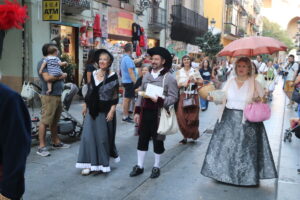 Desde las 10 horas la Plaza de Manises ha adquirido un ambiente medieval con diferentes actividades dirigidas a un público infantil. Los bufones de la corte han dado la bienvenida a los pequeños con sus gigantescos zancos, acompañados de sus músicos y los soldados del Rey, para dar paso a la exhibición de combates medievales. La jornada matutina ha continuado con espectáculos de baile, magia y circo, además de la aparición de seres mitológicos al ritmo de los músicos. Finalmente, el Rey, la Reina y el gran Sultán han nombrado damas y caballeros a todos los niños y niñas que se han acercado.