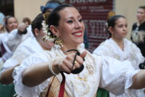 El momento más esperado del día por aquellos que se han acercado hasta los aledaños de la sede de la entidad provincial ha sido el Passacarrer de les Comarques, consolidado ya como el evento central de la víspera del 9 d’Octubre. Una abarrotada calle Serranos ha sido el escenario de un desfile en el que sociedades musicales, grupos de danzas y bailes tradicionales de varias comarcas de la provincia han mostrado a los asistentes parte de las tradiciones y manifestaciones culturales que hay en diversas zonas de nuestro territorio. El Tío de la Porra de Gandia, los Gegants i Cabuts d’Ontinyent o els Bastonets de Algemesí, entre otros, han llenado de animación y ambiente festivo el centro de la ciudad la víspera del gran día de todos los valencianos.