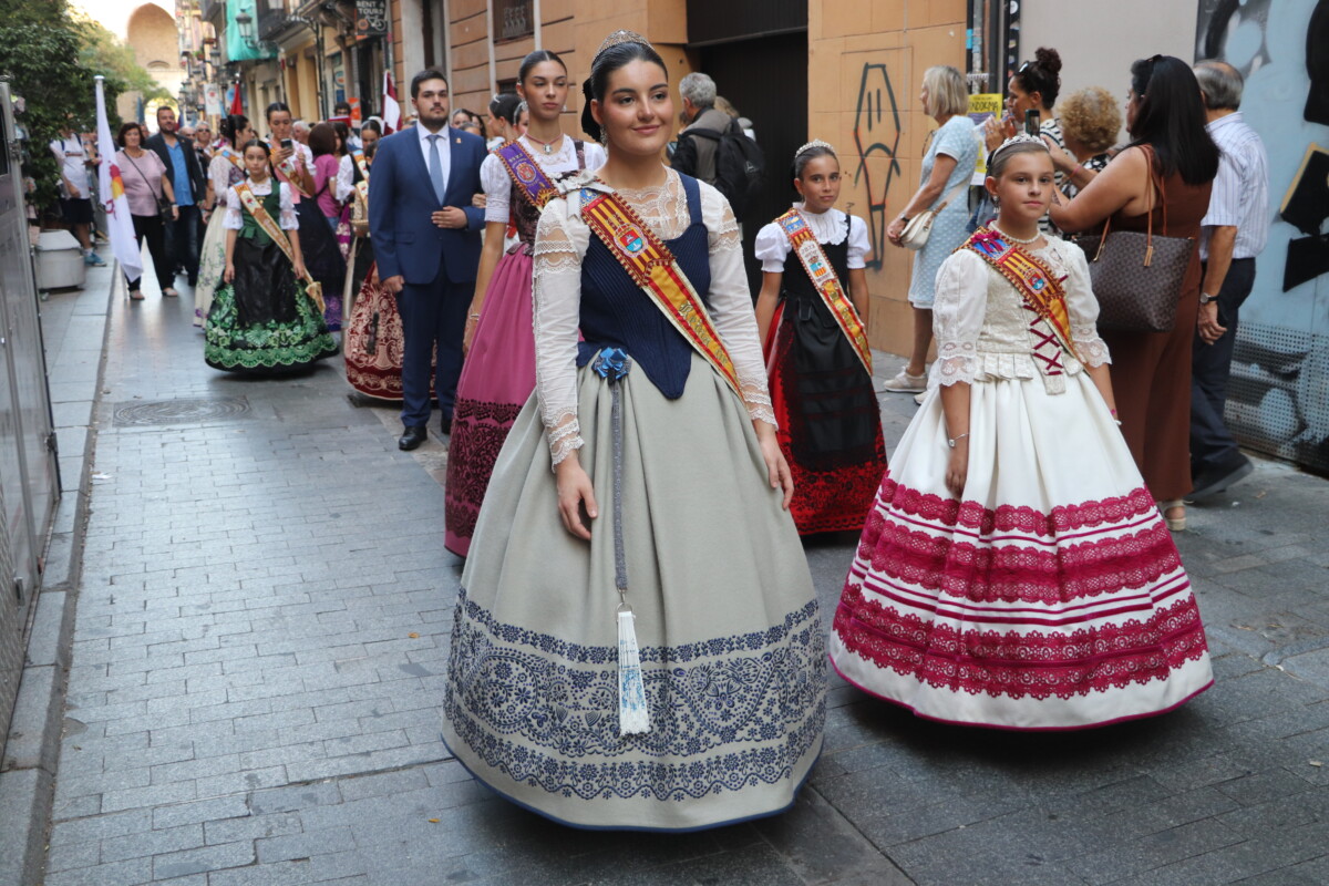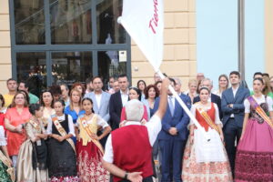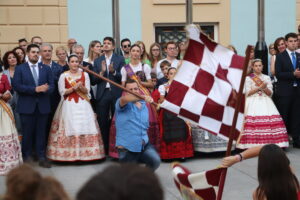 En paralelo, y también desde las 10 horas, las puertas de la Diputació situadas en la misma Plaza Manises han permanecido abiertas para toda la ciudadanía. Gracias a ello, han sido muchos los valencianos y que han entrado en los palacios de Scala y de Batlia. Allí han podido visitar una exposición con réplicas de indumentaria vinculada a Jaime I y sus caballeros, instalada en la Sala de Respecte. Además han podido contemplar las Senyeras de Lo Rat Penat, facsímil de la de 1596 que custodia el Ayuntamiento de Valencia, y la de Blasco Ibáñez, la réplica fabricada por el taller de Eduardo Sanchís Romero, que cubrió el féretro del célebre escritor, periodista y político valenciano en su traslado a la ciudad desde tierras francesas.