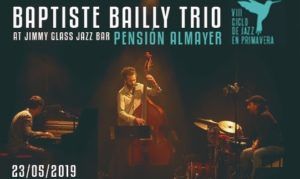 El pianista francés Baptiste Bailly presenta el jueves 23 de mayo en el Jimmy Glass ‘Pensión Almayer’ (Fresh Sound New Talent) con sus queridos compañeros de viaje: el excelente y reconocido contrabajista Ales Cesariniy el gran percusionista David Gadea. Grabado en diciembre de 2017 en Valencia, este primer álbum del trío consigue una sutil alquimia entre el impresionismo francés, la world music y el flamenco, fruto de varios años de viaje por Francia y España.