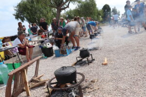 Tal y como estaba previsto, desde las 11 de la mañana multitud de pequeñas hogueras comenzaron a arder en la explanada para cocinar el plato típico de la ribera de la Albufera y un tiempo después, los experimentados cocineros iban mostrando el resultado al jurado que otorgarían un gran premio a las personas ganadoras.