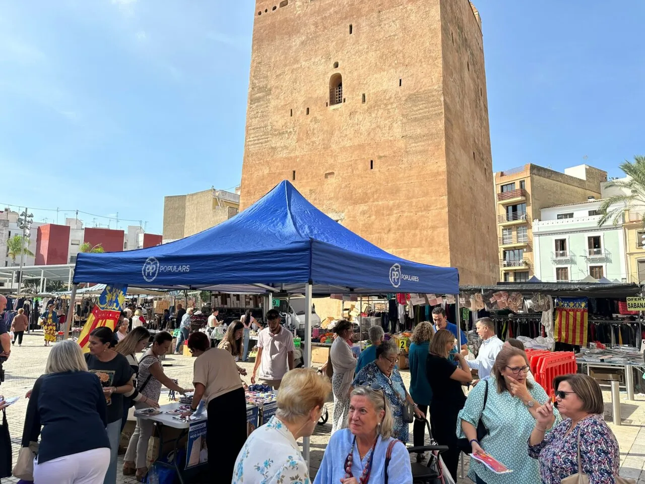 El Partido Popular de Torrent también lleva más de una década promoviendo la campaña 'Trau la Senyera', con el objetivo de que los balcones de la ciudad luzcan con los colores de la bandera valenciana durante la festividad. Con la iniciativa puesta en marcha hoy en el mercado, el PP comienza también a explicar a los ciudadanos en la calle su gestión a mitad de legislatura, vinculándola a la celebración del 9 d’Octubre en esta primera área.