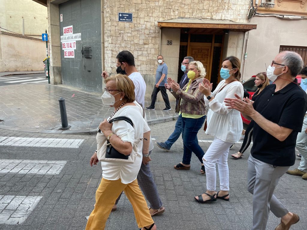 La portavoz del PP en el Ayuntamiento de Valencia, Mª José Catalá, y concejales populares Mª José Ferrer, Santi Ballester, Carlos Mundina y Julia Climent y el senador Fernando de Rosa se han unido este viernes a la manifestación celebrada en las calles de Benimamet para exigir un nuevo retén policial.