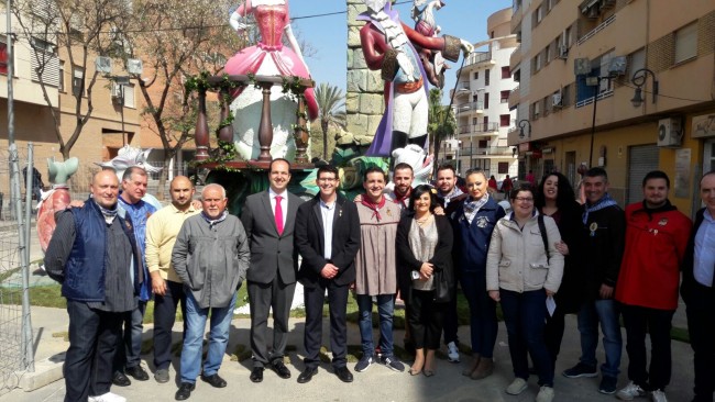 Rodríguez ha devuelto este jueves la visita a los falleros y falleras de Aldaia, en concreto, a los que tienen sus casales en la parte sur del municipio. El presidente ha visitado los monumentos de las comisiones Mestre Serrano y Plaça de les Corts Valencianes, donde ha podido comprobar que ondeaban los estandartes entregados por la Diputación en conmemoración de la declaración de la UNESCO, y requisito para que las comisiones reciban la ayuda de 250 euros que ofrece la Corporación. Las comisiones de Aldaia también tienen previsto lucir los estandartes con el reconocimiento universal de la fiesta en la entrega de premios programada para este jueves.