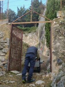 El esfuerzo de la Iglesia Jesuitas Valencia y, en su nombre, del Delegado de la Plataforma Apostólica Mediterránea, Ignacio Dinnbier SJ, ha hecho posible acceder al edificio para descolgar la campana, trasladarla por un camino rural en una carretilla hasta un vehículo de transporte y llevarla al taller en el que se someterá a diversas labores de restauración y adecuación para poder instalarla de nuevo junto a sus primeras compañeras.