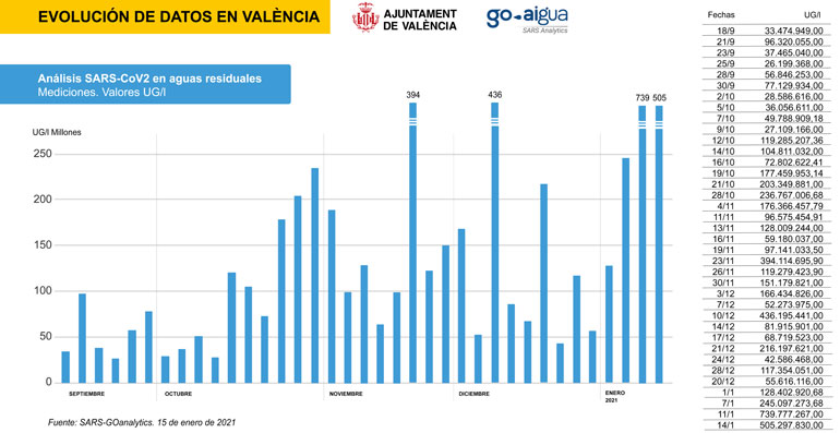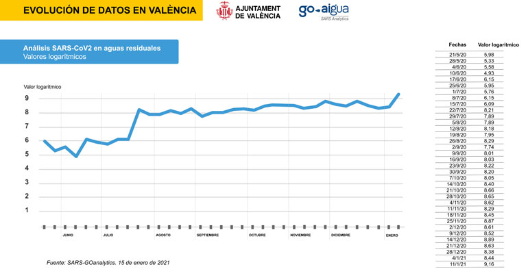 La incidencia del coronavirus en las aguas residuales de la ciudad de València aumenta muy significativamente, según revelan los datos de las dos últimas semanas facilitados por la concejala del Ciclo Integral del Agua, Elisa Valía. “Los niveles de restos de coronavirus en las aguas residuales de la ciudad son altos y corroboran el empeoramiento de la situación. La curva, lejos de doblegarse, continúa en ascenso”, ha asegurado la edila quien ha advertido que la presencia del virus en las aguas residuales “no es homogénea en toda la ciudad”.