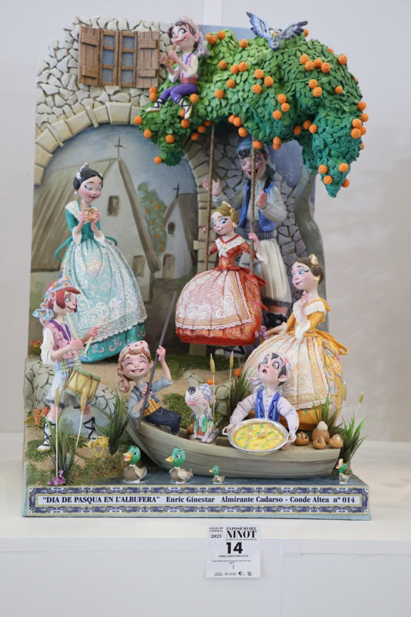 En cuanto al Ninot Indultat Infantil, 'Dia de Pasqua en l’Albufera', el conjunto representa una pandilla de niños en una tarde típica de Pascua en el parque natural de la Albufera, lugar tradicionalmente habitual para esta celebración. El artista refleja la escena bajo un enfoque bucólico y folclorista, al estar todos los personajes ataviados con la indumentaria tradicional valenciana, destacando elementos característicos como el naranjo y la barca en el lago.