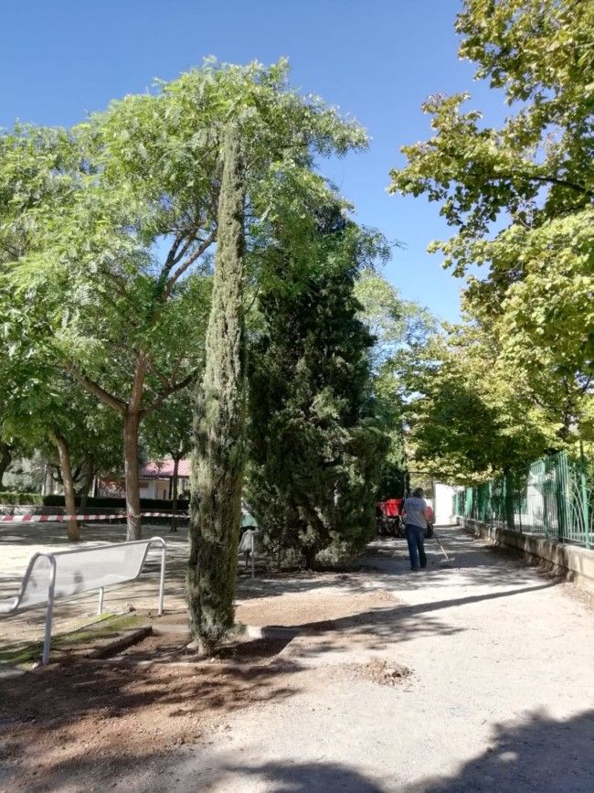 Los alumnos y alumnas del Taller de Empleo E-Burja: Educación sostenible siguen trabajando para mejorar las zonas verdes de Burjassot. El equipo de la especialidad Instalación y mantenimiento de jardines y zonas verdes AGAO0208 ha estado estos días trabajando en el Parque de La Granja, plantando cipreses en los alcorques vacíos ubicados en la zona de juegos tradicionales.