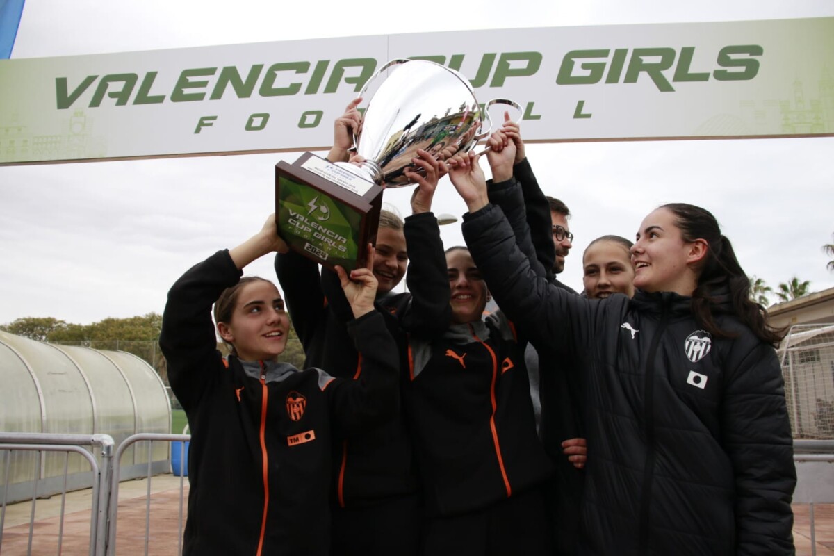 El Valencia CF Femenino se alzó como club campeón absoluto de la IV Valencia Cup Girls. Tras tres ediciones siendo el Levante el club ganador de la clasificación general, las blanquinegras suben al cuadro de honor. La suma global de puntos en función de los equipos con los que participó en el torneo internacional femenino de fútbol base le permitió alzar el título de este campeonato, que completó este domingo su cuarta edición. Por categorías, el Mislata se impuso en la categoría G19, las noruegas del Lyn lo hicieron en G16, el Valencia lo hizo en G12, y el Rush Select 10 de Estados Unidos lo consiguió en G14.