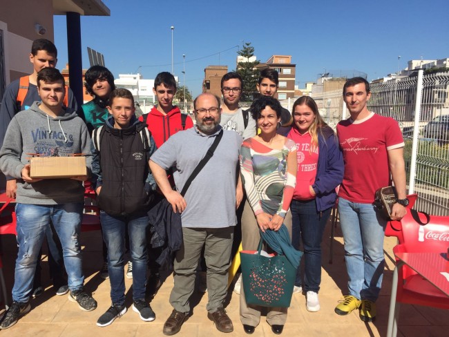 La Regidora d'Educació, Ana Borja, i el responsable de l'empresa adjudicatària dels serveis de Socorrisme a la Pobla de Farnals, José Luis Sanmiguel, es van reunir el passat 10 d'abril amb els estudiants de l'IES Guillem d'Alcalà de la localitat que participaran en La Fira Aèria, un projecte d’innovació educativa l’objectiu del qual és que joves de 12 a 18 anys aprenguen a construir drons amb una finalitat social o mediambiental d’impacte positiu per al seu entorn.