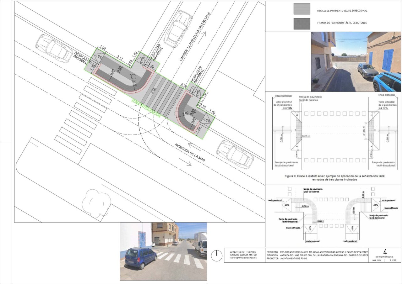 Així, amb la finalització de les obres, es millorarà la seguretat vial als encreuaments, es garantirà que els itineraris de vianants siguen completament accessibles i continus, es facilitarà el pas de persones amb mobilitat reduïda i es millorarà l’orientació de persones amb discapacitat visual gràcies al paviment tàctil.