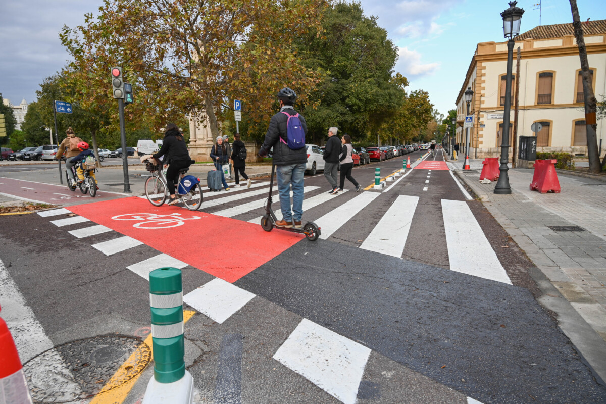 Con los trabajos se han modificado los pasos de peatones en las intersecciones que atraviesa el carril bici, mejorando y adecuando su trazado. Por otra parte, en la intersección de la calle Muñoz Seca se generará una nueva dársena habilitada para parada de autobús que será empleada tanto para servicio alternativo de la EMT como para parada del bus turístico.