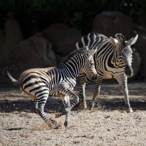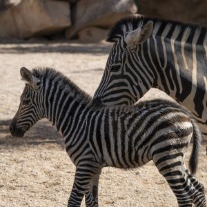 La noche de luna llena ha traído una nueva vida a Bioparc y parece que en este caso se han cumplido las referencias tradicionales a la influencia de nuestro satélite en los partos de algunos mamíferos. Un hecho que ya se ha producido otras veces en el parque. La cebra Bom ha mantenido la costumbre de ser la primera de las tres hembras en parir a un precioso potro del que, por el momento, se desconoce su sexo. Ambos animales se encuentran perfectamente y ya pueden contemplarse junto con el resto de la manada en su recinto exterior, donde comparten hábitat con rinocerontes, avestruces, ibis sagrados y marabús.