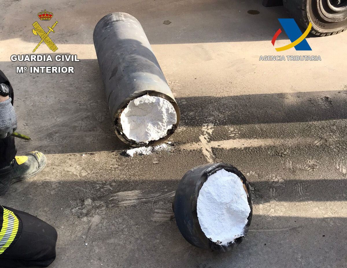 En la nave de Sueca, se llevó a cabo la detención de dos personas que estaban esperando para recibir la maquinaria. A continuación, se procedió a la extracción de un total de 14 cilindros metálicos que formaban parte del aparato industrial, una máquina trituradora de 11 toneladas. En el interior de los cilindros se encontraba la droga, para cuya extracción se solicitó la colaboración de una unidad de bomberos de la localidad. Esta labor se prolongó durante toda la jornada y la del día siguiente, dada la complejidad de la operación. Los cilindros fueron finalmente trasladados a las instalaciones de la Aduana de Valencia para su depósito, custodia y posterior análisis pericial.
