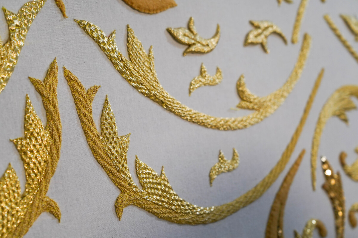 “El manto de la Virgen va bordado en realce y cartulina. Está hecho todo a mano y lleva unas bases de cartulina o de fieltro y algodón. Después se pasa todo el oro por encima con unas puntadas con hilo amarillo. La gran mayoría de las piezas se bordan en bastidores pequeños y luego se aplica todo en el tisú de plata que se está tejiendo”, ha explicado Jaime Guillem, de Bordados Angelita Suay.