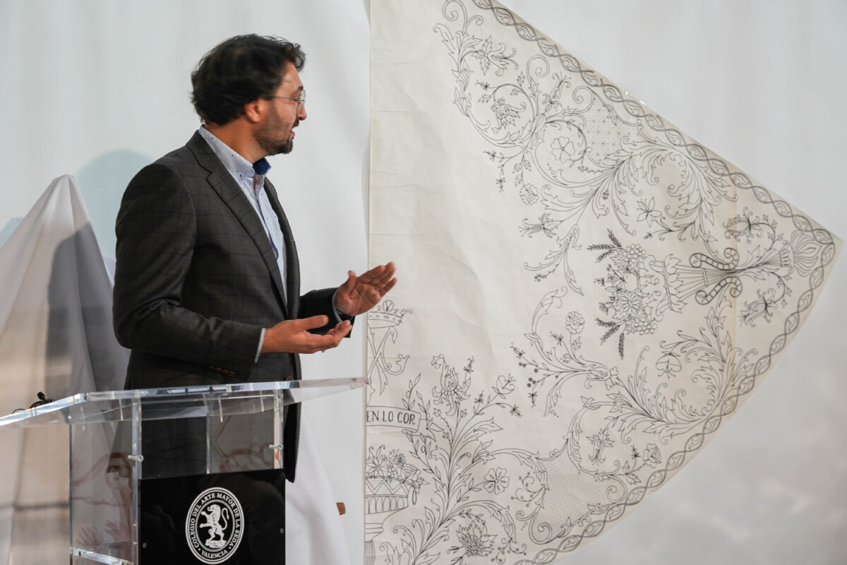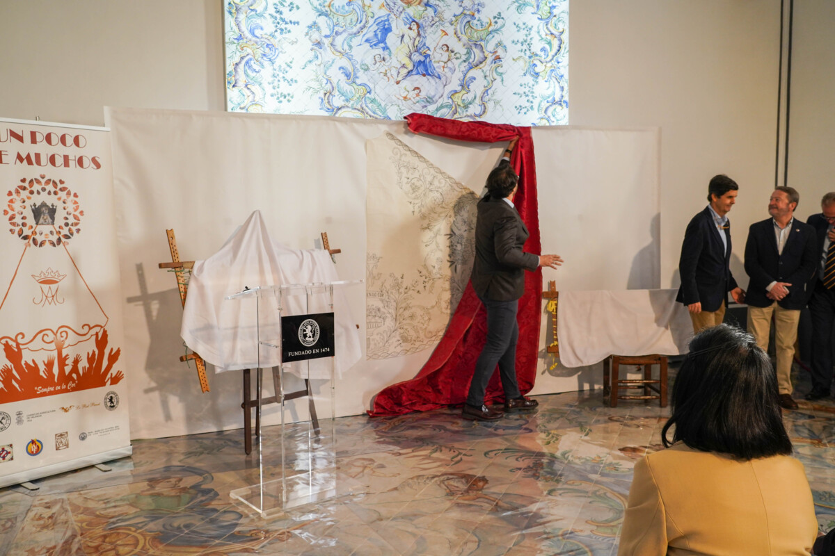 “Para este proyecto es importantísimo que las entidades impulsoras sepamos llegar a muchos, porque queremos que sea muy solidario con la 'Corona de Caridad' y una demostración del pueblo valenciano, que bajo el manto de la Virgen, quieran mostrar su amor y generosidad. Para hacer ese llamamiento, hoy se ha querido mostrar el boceto del manto, que normalmente no se enseña hasta estar terminado”, ha comentado María Luisa Llorens, bibliotecaria y encarga de exposiciones del Colegio del Arte Mayor de la Seda.