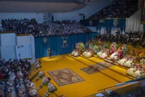 Una vez exaltadas, las componentes de la Corte de Honor Infantil han ocupado sus tronos a la espera del gran momento de Sara, su Fallera Mayor Infantil. Llegaba el momento y Sara entraba radiante al escenario de la sala Iturbi rodeada de una gran cantidad de aplausos por parte de todos los asistentes que no han querido perderse uno de los momentos más esperados en este día.