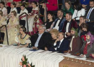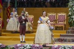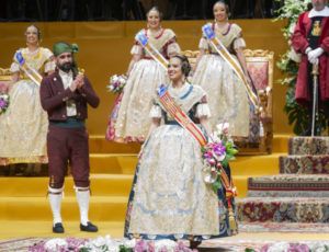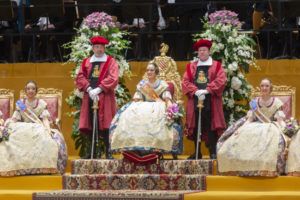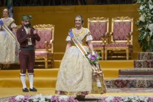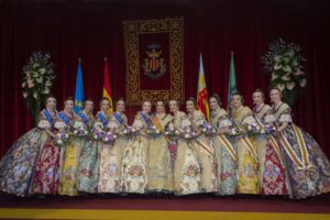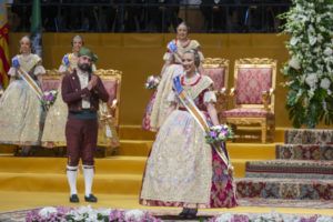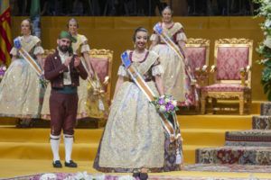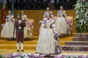 Llenando de brillo el escenario, ocupando ya sus tronos de Corte de Honor, esperaban con la máxima felicidad reflejada en sus rostros a la Fallera Mayor de Valencia.