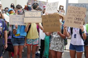 La comunidad educativa del centro, tanto las familias como la dirección de la escuela, aseguran llevar años tratando de resolver el problema de la falta de sombra al patio. Hace 10 años que el AMPA -ahora AFA- ya organizó acciones para poner de relieve el grave problema que representa para el alumnado que el sol dé en todo el patio.