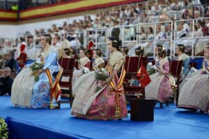 Una vez recibidas Laura Mengó y Paula Nieto, Fallera Mayor y Fallera Mayor Infantil de València con sus respectivas Cortes de Honor, daba comienzo el acto, al que asistieron diferentes autoridades civiles y militares, entre las que se encontraban la Delegada del Gobierno en la Comunidad Valenciana (CV), Pilar Bernabé y la Presidenta del Tribunal Superior de Justicia de la CV, Pilar de la Oliva.