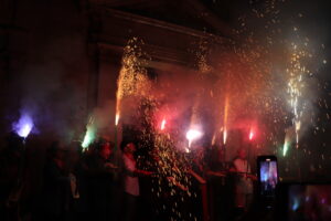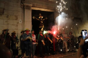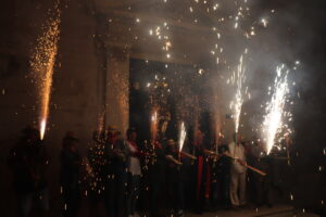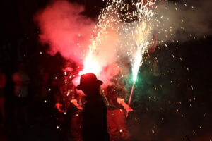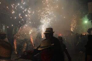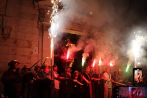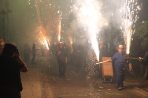De nuevo las calles más céntricas de Paterna se sumergieron en la pólvora a través de una calurosa noche de agosto que comenzó con la bendición y el encendido de los cohetes a las puertas de la Iglesia con la imagen del Cristo de la Fe presente, dando así el pistoletazo de salida al Pasacalles, antesala de la Cordà.