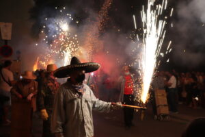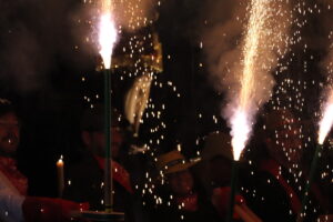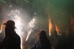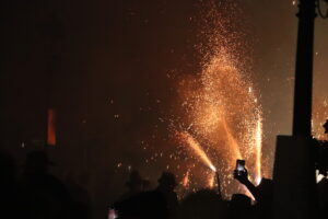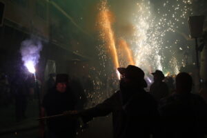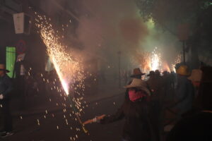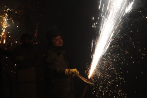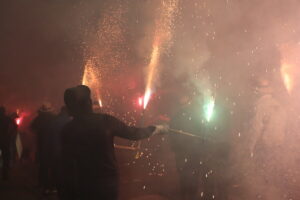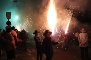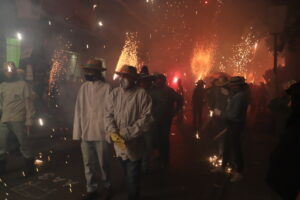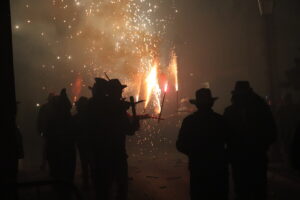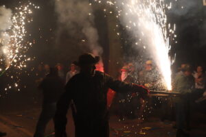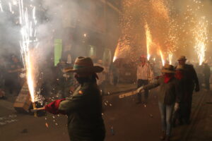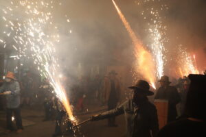 Así, un esplendor cegador acompañado de un rugido tronante recorría la calle desde la plaza Mayor dando lugar a una interminable sucesión de explosiones de cohetes, hasta dibujar a duras penas las siluetas de los tiradores entre un sinfín de fogonazos y ruido ensordecedor... Una experiencia difícilmente descriptible que hay que vivir en primera persona para poder calibrar en su justa medida.