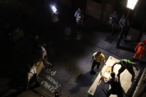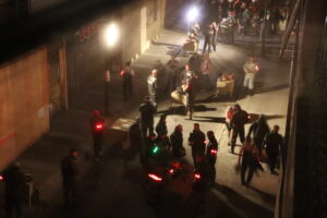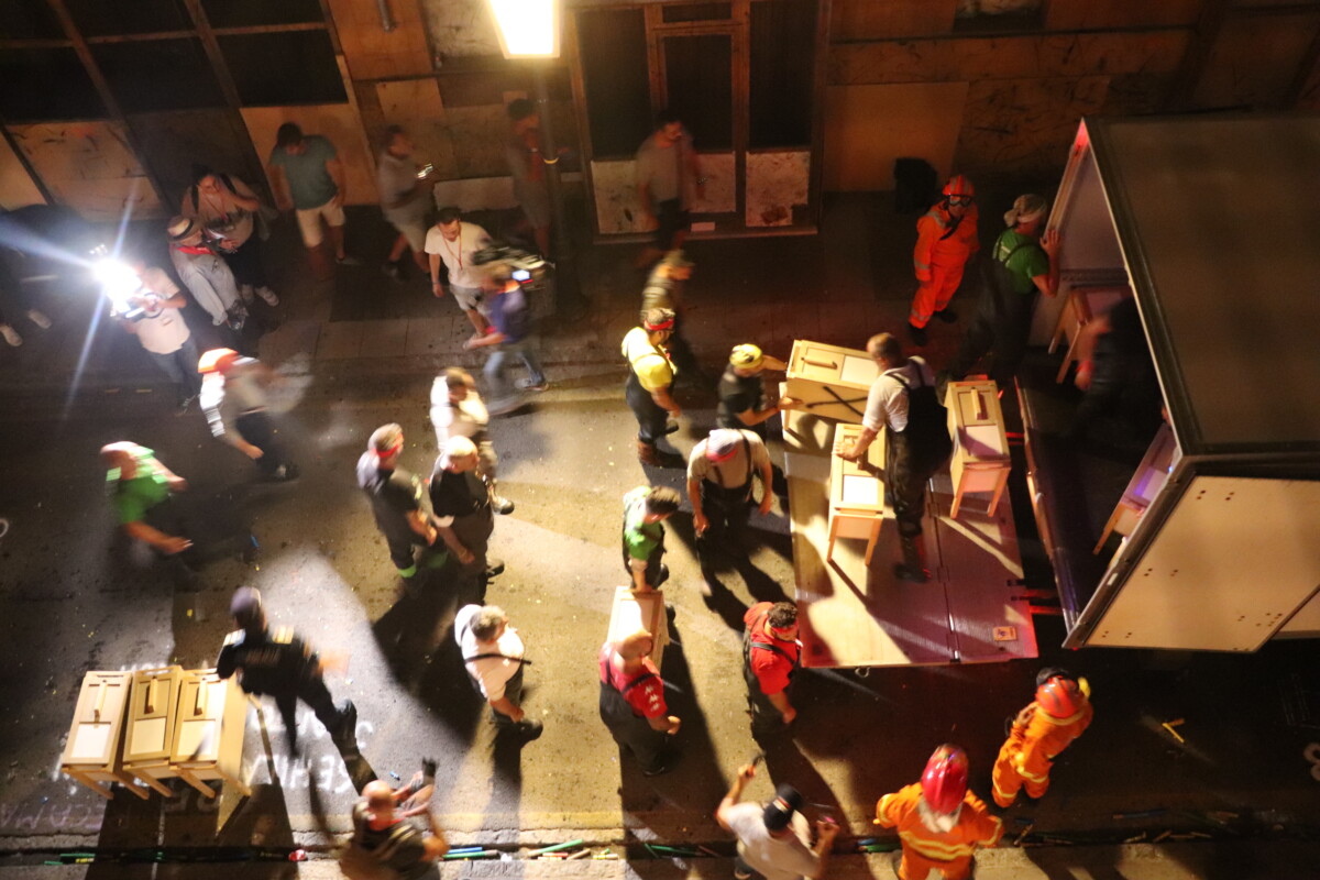 Así, quedaron repartidos dos tipos de puestos: los de número, con 3 cajones repletos de cohetes en cada uno y, en el centro de la calle, uno cada pocos metros, los marcados con una X, que entran en juego cuando el estruendo y luz de la Cordà decae un tanto, para mantener la intensidad en todo lo alto.