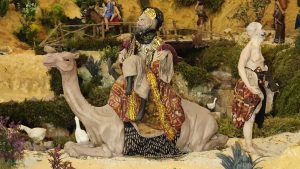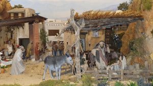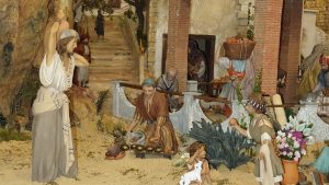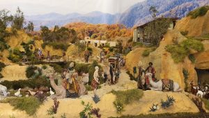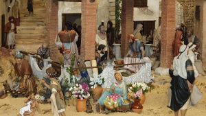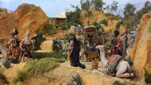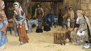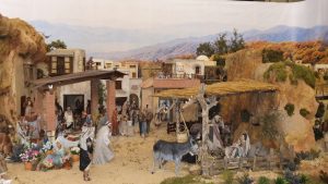 Con más de 300 figuras, construcciones típicamente hebreas y una superficie total de 45 metros cuadrados, el belén incluye piezas de algunos de los más reputados escultores en el ámbito belenístico, como José Luis Mayo, H. Cerrada, Montserrat Ribes, Daniel Alcántara, Higinio Martínez, Guadalupe de Guzmán, Ángela Tripi y los valencianos Enrique Villagrasa y Quique Garcés, dirigidos todos ellos por José Luis Heredia, Purificación Carbonell y Gonzalo Mateu.
