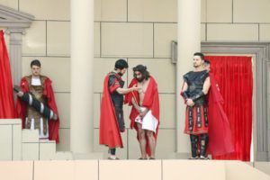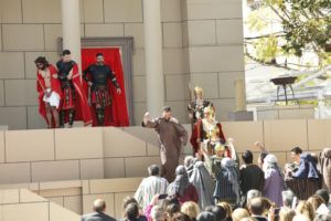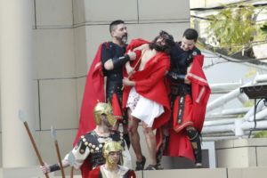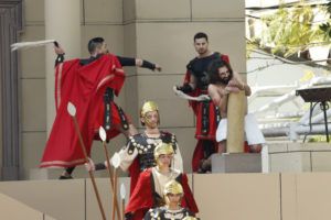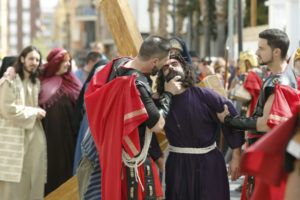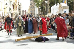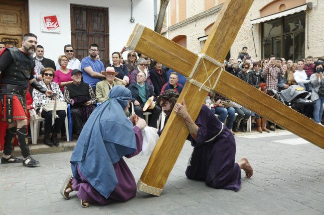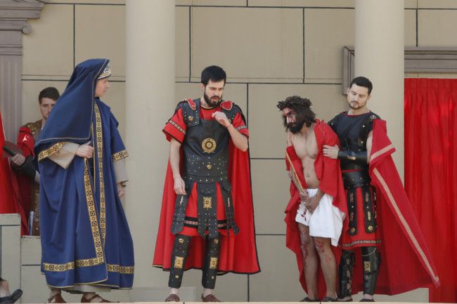 Con el juicio a Jesús ante Pilatos comenzaba la jornada que ha continuado con el camino por la calle de la Amargura en el que se escenificaron varias estampas como las Caídas del Señor, Encuentro con su Madre, Ayuda del Cirineo y Gesto piadoso de la Verónica hasta llegar al Monte Calvario donde se procedió a la Crucifixión de Cristo. Por segundo año consecutivo fue el actor Sergio Ataz el que encarnó el personaje de Jesucristo.