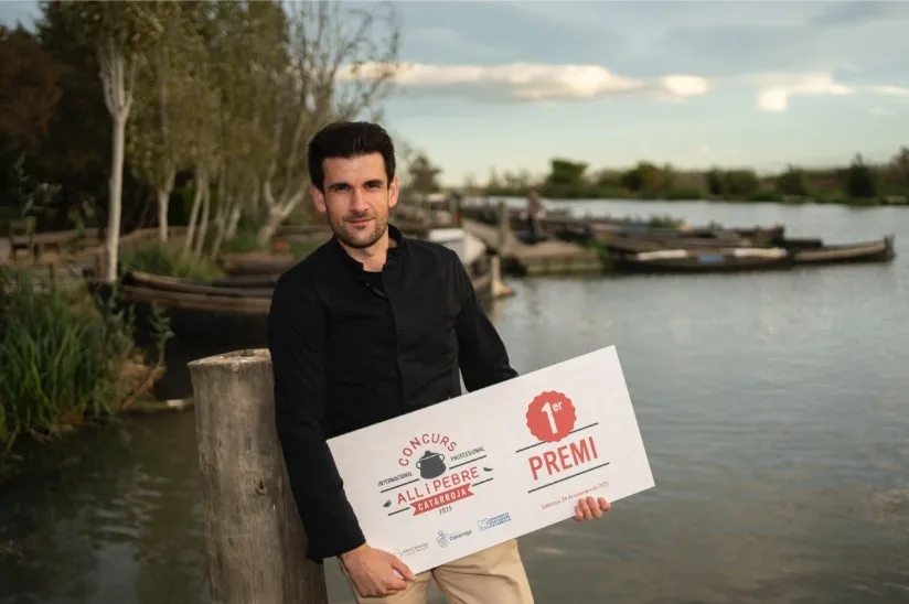 Aitor Martínez, del restaurante Can Ros, ha sido el ganador del III Concurs Internacional i Professional d’All i Pebre, celebrado esta mañana en el Port de Catarroja. Su propuesta, titulada ‘All i Pebre en su Hábitat’, ha destacado por un pilpil de all i pebre como plato principal y un tronco de patata con su guiso como secuencia, una elaboración que ha convencido al jurado por su técnica, presentación y originalidad.